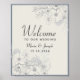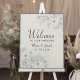 Poster de boas-vindas elegante, moderno, botânico e empoeirado, com um cadáver floral falso prateado e um simples roteiro de caligrafia.