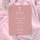 Este elegante cartão-postal de batismo cor-de-rosa rosa, batizante e poeirento, pode ser personalizado com as suas informações em tipografia quic. Projetado por Thisnotme©
