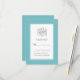 Elegante cartão de detalhe de RSVP de casamento em azul água-verde com caligrafia chic apresenta um belo contorno em azul água que inclui uma borda branca elegante e delicada. A caligrafia e a escrita elegantes são cinza carvão em um fundo branco. A parte de trás do design combina com azul água sólido. Certifique-se de ver os rótulos de endereço de retorno de RSVP coordenados disponíveis em uma listagem separada!