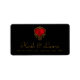 Etiquetas de endereço de resposta de casamento vermelhas, pretas e douradas com lindo coração vermelho e dourado e interior damasco preto e dourado. Estas etiquetas de endereço de retorno elegantes vermelhas, pretas e douradas são facilmente personalizadas com seus detalhes.