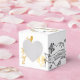 Seu casamento será elegante com esta caixa de favor desenhada com coração floral branco, coração de ouro perto do casal significa que é um amor de ouro que você celebra, e pombas que significa tanto amor e paz. Este cheio de amor e sentimento vai adicionar um excelente