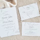 Apresentando nossa Elegante placa RSVP Floral, uma mistura harmoniosa de sofisticação e beleza natural. Este cartão meticulosamente trabalhado apresenta delicados florais desenhados à mão inspirados por intrincados trabalhos de cadaria, colocados sobre um fundo sutil de pedra, exuberando a elegância do eterno. Projetada para complementar o seu pacote de casamento, esta placa RSVP oferece amplo espaço para detalhes essenciais, incluindo opções de resposta, requisitos de dieta e informações de contato, garantindo uma comunicação perfeita com seus convidados. Impresso em papel texturizado premium, ele adiciona uma dimensão tátil que convida ao toque, deixando uma impressão duradoura. Personalize este cartão para refletir o seu estilo único, criando um conjunto de papelaria coeso e memorável para o seu dia especial.