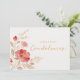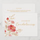 Desenho de cartão de condolências com efeito floral vermelho claro e dourado no canto.