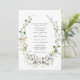 Convite de casamento com uma coroa aquosa de flores silvestres e verde. Personalize com suas informações.