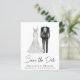 Salve o anúncio de data com aquarelas de um terno de noiva e de noiva e "Salve a Data" em um roteiro elegante. Adicione seus nomes, data de casamento e local na tipografia moderna. No verso, personalize o lançamento da data em mais detalhes e adicione seus nomes em um script semelhante a assinatura.