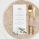 Elevem sua recepção de casamento com nosso Menu de Casamento de Blooms Florais de Ivory. Esta sofisticada design apresenta delicadas flores de marfim interligadas com folhagem verde macia, criando um eterno e ambição romântica para o seu dia especial.