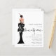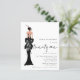Festa de aniversário de 21 anos do Roteiro da Senhora Trendy. Um alternativo de 4,5 pol x 5,6 pol com preço inferior. Disponível em um STOCK DE CARTÃO SEMI GLOSS 110 lb, que é a opção padrão (recomendada para convites, semelhante à espessura de um cartão postal) OU um STOCK DE PAPEL THINNER FINISH DE 80 lb FINISH (ideal para gabinetes). Uma ilustração da visão de trás de uma senhora glamourosa em preto e vinte um está em um roteiro de estilo de escrita manual funk. Personalize facilmente o resto do texto para seus próprios detalhes.