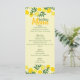 Traga um toque fresco e vibrante para sua recepção de casamento com este elegante menu de tema limão. Com limões aquosos, verde macio e tipografia clássica, esta modelo é perfeita para um casamento de verão, jardim ou destino. Personalize facilmente o texto para corresponder aos detalhes da refeição e do evento. Uma bela adição à sua capa de sopa de casamento.