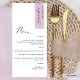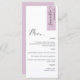 Porquê gastar cartões de lugar e cartões de menu quando pode ter um Menu elegante All-in-one personalizado com o nome de cada convidado! Design contemporâneo, simples e elegante com uma bela caligrafia manuscrita moderna. A faixa no canto superior direito está em um tom púrpura pastel lilac atraente com o nome de convidado em preto. De volta no mesmo tom pastel lilás que a faixa. Capacidade de alterar ambas, a cor da faixa ou a parte traseira selecionando "personalizar ainda mais". NOTA: adicione um nome de convidado a cada menu, adicione o menu ao carrinho de compro; depois volte ao menu, adicione um segundo nome de convidado e adicione o menu ao carrinho de compro... continue com este processo com todos os nomes de convidado na sua lista. Para primeiros nomes de convidado curtos, adicione com a barra de espaço do teclado alguns "espaços" vazios antes do nome, para centralizá-lo melhor. Este design está disponível em uma variedade de opções de cores. Parte da nossa coleção "Joyful Floral" com muitos produtos de coordenação disponíveis. Visite a coleção por categoria nesta página de produtos ou navegue na coleção inteira num único olhar em: https://www.zazzle.com/collections/joyful_pastel_floral_collection-119953493901910528