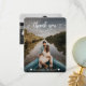 Mão Elegante Inscreve Cartões de agradecimentos Fotográfico De Casamento. Obrigado de casamento do Na moda moderno seu modelo de cartão postal com uma foto vertical do cheio na frente com o texto "Obrigado" em uma fonte de script de tipografia escrita escrita à mão robusta, em branco na fotografia. Placa de dois lados com 2 fotos. Personalize seu nome e obrigado da mensagem. O nome modelo inclui um pequeno coração branco. Se preferir escrever manualmente a sua nota, basta eliminar o texto de amostra para obter mais espaço. Se você precisar de ajuda ou item correspondente, entre em contato comigo!