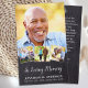 Os cartões de oração são uma forma séria de comemorar a memória de um ente querido que morreu. Nossas cartas de oração modernas e elegantes apresentam uma colagem fotográfica de quatro fotos e podem ser personalizadas com um belo poema ou oração de sua escolha. Estes cartões são perfeitos para serem usados como favores funerários ou como guardas para distribuir durante um serviço de memorial ou celebração da vida. As nossas cartas de oração são concebidas com o foco na memória e são uma maneira comovente de expressar simpatia e oferecer apoio àqueles que estão em luto. A frase "In Loving Memory" aparece de forma destacada na frente de cada carta, junto com o nome do seu amado e suas datas de nascimento e passagem. Além de ser um belo tributo à memória do seu amado, nossos cartões de oração também servem como um lembrete do amor e apoio que o rodeia durante este período difícil. Ordene o seu hoje e ajudemos-vos a honrar a vida do vosso amado com um tributo duradouro que será apreciado nos próximos anos. COPYRIGHT © 2024 Judy Burrows, Black Dog Art - Todos Os Direitos Reservados. Elegante Memorial 4 Imagens Cartões de Oração Funerários