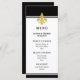 Este cartão de menu de casamento elegante apresenta uma tradicional flor-de-lis francesa dourada e listras pretas e brancas elegantes na parte superior e inferior do cartão.