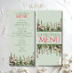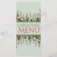 Celebre sua reunião festiva com este belo cardápio de Natal com aquarelas verdes e sutis sotaques de ouro. Perfeito para jantas de Natal, festas de Natal ou recepções de casamento no inverno. Personalize facilmente o texto para ajustado do estilo de refeição e evento. Um na moda e uma elegante adição à sua decoração de mesa de férias.