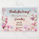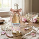 Celebre a noiva com esses charmosos rótulos personalizados para mini garrafas de vinho espumante, perfeitos para adicionar um toque de elegância aos brindes da festa de noivado. Com um design floral suave em rosa com delicadas flores de magnólia e borboletas, o rótulo diz "Obrigada por vir! Derramando amor e alegria" ao lado do nome da noiva e da data do evento personalizáveis.