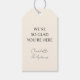 Estamos tão felizes que você está aqui! Elegante, mínimo, escrita manual, bege "Etiqueta de presentes".