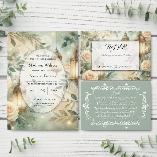 Sage Green and Ivory Rose Lantern Wedding SuiteCriado por Lacey Moyer
