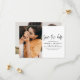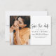 Cartões de Salvar Data de Casamento que têm uma foto na frente e atrás. Os cartões de Salvar Data contêm uma tipografia de letra cursiva manuscrita moderna que é elegante, simples e moderna para usar após a celebração do seu dia de casamento.