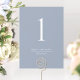 Ajude seus hóspedes a encontrar sua mesa com este elegante número de mesa moderna. Cartões duplos para o caso de você gostar de usá-los em quadros claros ou mesas que possam ser vistos de frente e de trás. Cor de fundo azul empoeirada com texto em branco. NOTA: adicione e peça individual para cada número de tabela (ou seja, para um evento com três mesas, você precisaria colocar e fazer o pedido com a tabela número um, adicionar ao carrinho de compro, voltar a adicionar número dois para a mesa dois, adicionar ao carrinho de compro, voltar e adicionar o número 3 para a tabela número três, adicionar ao carrinho de compro e agora que a ordem estiver completa, continuar com o pagamento). Parte da nossa coleção "Elegant Bliss" com uma variedade de produtos de coordenação disponíveis como cartões de lugares.