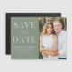 Anuncie a data do seu casamento com este ímã de cartão de salvar a data de foto moderno e elegante. O design apresenta "Salvar a Data" em fontes serifadas e script em branco com um fundo verde sage. Personalize o ímã de cartão de salvar a data minimalista adicionando seus nomes, data, local do casamento e foto. O ímã de cartão de salvar a data simples é perfeito para qualquer tema de casamento.