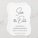 Caligrafia Negra E Branca Minimalista Moderna Modelo simples com seu site de casamento, convites para código QR e artigos de papelaria e anúncios / Salvar as datas / Colchete plano impresso Salvar a placa de data.