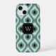 Elegante Monograma Ikat Preto e Verde Menta com Di