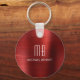 Monograma Elegante Personalizado Vermelho Falso Brutado Chaveiro de metal.