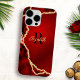 Esta capa de telefone cinza na moda com um design preto e vermelho em estilo agate com brilho de ouro falso é fácil de personalizar com um nome e uma inicial.
