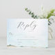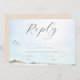 Um elegante cartão RSVP de casamento com escolha de refeição que inclui uma pintura aquosa de uma praia de oceano selvagem. Uma escolha encantadora de temas costeiros para um casamento na praia ou uma recepção na praia.