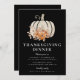 folhagem de abóbora e texto ousado, convite de ação de graças. O texto e as cores podem ser personalizados.