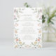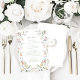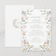 Melhore a celebração do seu eterno com um elegante cartão de menus botânico. Mostrando uma camada aquosa de flores de prados pastel e folhas de eucalipto verde. Este design refinado é complementado por um toque personalizado — nograma da noiva e noiva no verso, criando um elemento marcante para sua celebração especial de primavera/jardim exterior de verão.