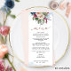 Aprecie seus convidados com este cartão de menu refinado. Design coordenando nossos convites "Pastel Floral Quinceañera". Separe o design que apresenta no topo um arranjo floral único, branco, cor-de-rosa, baga, burgundy, azul pálido e marinho, manchas azuis delicadas de aquarela azul e no fundo o seu nome e data. Rosa gold e detalhes modernos da caligrafia escrita à mão, tanto na frente como no verso. Belo design atrás com grande buquê floral com faixa central com detalhes de ouro rosa, e nome da quinceañera. Também disponível em espanhol. Parte da nossa coleção "Pastel Floral".