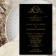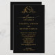 Programa Elegante de Casamento de preto e ouro com belo monograma desenhado à mão e detalhes caligráficos escritos à mão modernos em folha de ouro falsa. Capacidade de fazer alterações e ajustes de texto selecionando personalizar ainda mais. Frente com detalhes da cerimônia de casamento, volte com nomes de festa de casamento e obrigado que envie para seus convidados. Design de preto e ouro. A "cor de fundo" preta pode ser alterada para qualquer outra cor através da edição através da ferramenta de desenho. Parte da nossa "Coleção de Casamentos de Monogramas Pretos e Dourados" com uma variedade de produtos coordenadores disponíveis. Visite a coleção inteira em: https://www.zazzle.com/collections/black_and_gold_monogram_wedding_collection-119092477004367833