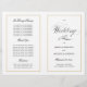 Este programa é uma página 8.5 x 11 que requer que você o dobre para montá-lo. A borda dourada é uma cor matta sólida. Programa clássico de casamento preto e branco, subestimado, com um toque moderno, com a elegante escrita da palavra "Casamento" na "cobrir" externa e na fronteira dourada.