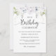 Um belo convite de aniversário com a habilidade de adicionar qualquer número de aniversário e até mudar o texto de "celebração" para "festa", "festa jante" "brunch" ou qualquer coisa que você quiser! Belo verde-aquarela e floral azul branco cobrindo seus detalhes. "Aniversário" na caligrafia moderna escrita à mão. O cartão está de volta com o mesmo belo verde e detalhe floral da frente. Parte de nossa coleção "Elegant Bliss" com uma variedade de produtos de coordenação disponíveis, incluindo acessórios de e-mail e produtos de eventos.