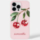 Elegante Red Cherry Personalised Script Name Pink