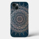 Capa de telefone floral circular magnífica de design em ouro rosa luminoso em fundo verde escuro, inspirada pela arte corporal mehndi henna. Carregar esta arte meditativa com você todos os dias no seu telefone.