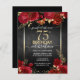Elegante Faux gold confetti destaca na borda superior e inferior. Rosas vermelhas profundas brilhantes com sotaques florais dourados. Todo o texto é ajustável e fácil de mudar para as necessidades do seu próprio partido. design de modelo de aniversário elegante excelente.