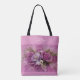 Personalize este Elegante "Um de um tipo", Buquê rosa rosa rosa, Tote Bag! Apresenta um legante Bouquet rosa e roxo com rosas rosa claro e escuro ao redor de flores brancas e roxas. Design De Arte Original Pelo Artista Kerry Miller.