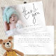 Elegante Roteiro De Foto Obrigado Anúncio De Nascimento. Envie a notícia alegre de sua nova filha bebê e diga obrigado a você ao mesmo tempo com esta design de foto minimalista, com um belo roteiro para Obrigado e o resto do texto em ambos os lados é fácil de personalizar. Substitua a foto da amostra pela sua. Uma camada de camada de gradiente está sobre a sua foto, de modo que ela desaparece à medida que ela chega ao centro com o texto parcialmente sobreposto no topo.