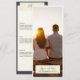 Celebre seu dia especial com nosso belo cardápio de casamento rústico, projetado para se adequar à nossa suíte de convite para casamento rústico Elegante. Este menu apresenta uma foto personalizável na frente, rodeada por uma borda amarela clara que cria um efeito branco envelhecido. Um encantador retângulo em forma de fita no centro inferior da foto contém os nomes do casal em uma letra elegante e a data de seu casamento em uma letra estilo máquina de escrever antiga. No verso, um fundo escuro complementa um retângulo amarelo claro que contém todos os menus de casamento na fonte da máquina de escrever. O design da fita com o título "Menu" aparece na parte superior deste retângulo, criando uma ilusão encantadora de que a fita está segurando o papel com as informações em um conselho rústico.