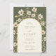 Este elegante convite para o casamento apresenta belo champanhe de aquarela e flores douradas com folhas falsas de folha de ouro e borda num fundo verde de sábio. O verso é verde sábio e o texto é cinza escura.
