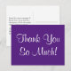 Este cartão postal de agradecimento elegante e sofisticado apresenta a mensagem "Muito Obrigado!" na frente, juntamente com uma mensagem personalizável no verso. Poderia ser usado para mostrar apreço a alguém que fez algo especial.