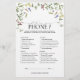 Um jogo moderno e elegante, "What's on Your Phone", com flores silvestres de verão de cor d'água, como ervilhas doces, tremoços, snapdragões, e mais, em tons brilhantes de verão de rosa, lilás, lavandas, amarelos, azuis e delicadas folhas botânicas verdes. Personalize suas respostas em preto, acentuado com uma bela caligrafia escrita à mão. Parte de uma suíte coordenada. Ver suite aqui: https://www.zazzle.com/elegant_summer_wildflower_floral_bridal_shower_invitation-256486599269422892 Contacte o designer para produtos correspondentes. Copyright Anastasia Surridge for Elegant Invites, todos os direitos reservados.