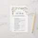 Jogo moderno e elegante de chá de panela "quem conhece melhor a noiva" com flores silvestres de verão de cor d'água, como ervilhas doces, tremoços, snapdragões, e mais, em tons brilhantes de verão de rosa, lilás, lavandas, amarelos, azuis e delicadas folhas botânicas verdes. Personalize suas perguntas em preto, acentuado com uma bela caligrafia feita à mão moderna. Parte de uma suíte coordenada. Ver suite aqui: https://www.zazzle.com/elegant_summer_wildflower_floral_bridal_shower_invitation-256486599269422892 Contacte o designer para produtos correspondentes. Copyright Anastasia Surridge for Elegant Invites, todos os direitos reservados.