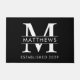 Elegante Tapete de Entrada com Monograma Personalizado Preto e Branco - A maneira perfeita de dar as boas-vindas aos convidados em sua casa. Mostrado em preto e branco, mas outras cores estão disponíveis. O tapete apresenta seu Monograma e sobrenome, e o ano em que sua casa foi estabelecida. Isso faria um presente de casamento ou de inauguração maravilhoso. Parte de uma coleção.