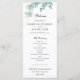 Este programa de casamento, que é perfeito para um casamento de verão, apresenta um belo gráfico de aquarela de ramos de eucalipto acentuado com botânicos de ouro. Personalize com a ordem de sua cerimônia e um obrigado que você coloca na frente e adicione a festa de casamento atrás.