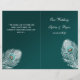 Elegante programa de Casamento de Pavão branco e teal, você terá que dobrar manualmente esses programas. clique em "limpar" à sua direita se você quiser remover as linhas dobráveis na frente e atrás, essas linhas dobráveis são dadas para guiá-lo de que nenhum de seu texto corre para o outro lado. Produtos correspondentes também disponíveis.