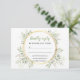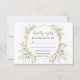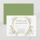 RSVP's de folhagem elegante com um fundo branco clássico, uma moldura circular dourada com folhagem verde e um modelo de RSVP elegante que é fácil de personalizar