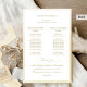 Programa Elegante de Casamento de Champanhe com belos monogramas desenhados à mão e molduras de aquarela em champanhe, creme e matizes de marfim. Design com elementos de caligrafia em frente e atrás. Capacidade de fazer alterações e ajustes de texto selecionando "Editar usando a ferramenta design". Frente com detalhes da cerimônia de casamento, volte com nomes de festa de casamento e obrigado que envie para seus convidados. Parte da nossa coleção "Champagne Cream Watercolor, Botanical Monographic Wedding" com uma variedade de produtos coordenadores disponíveis.