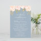 Fundo azul empoeirado e rosa de cor d'água, programa de casamento de ordem de serviço com modelo de festa de casamento. Um programa romântico botânico para destacar sua cerimônia de casamento. Este design apresenta elegante paisagem verde-aquática floral, simples roteiro de caligrafia foliar, primavera no outono de Verão, ordem de serviço de folhas botânicas, blush botânico clássico de folhagem natural, flores de tipografia minimalistas, uma festa de noiva minimalista, com pénia chica única primavera, uma peônia chic única de champanhe, cerimônia de igreja de casamento